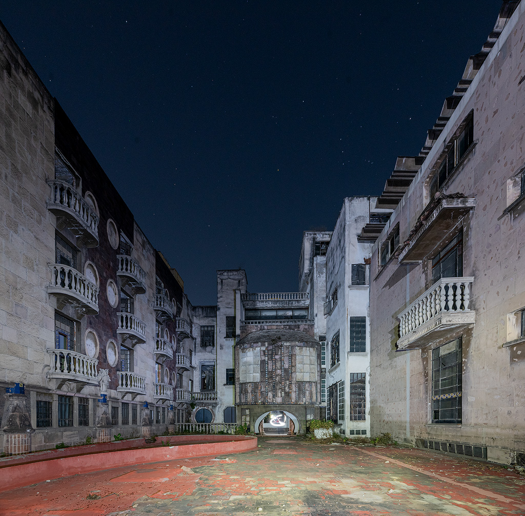 Detenido en el tiempo, el Hotel Posada del Sol, como una muestra de lo bizarro que puede llegar a ser la Ciudad de México, justo en el centro del bullicio más estrepitante de la colonia Doctores, y al lado de los artífices de la ley y la justicia, el Tribunal Superior de Justicia, se encuentra uno de los espacios más incomprensibles de la Ciudad. Todo el tiempo pensé conocer bien la ciudad, me consideraba un citadino experimentado, conocedor de todos los rincones de la Ciudad, hasta que me subí a la bicicleta y rodé de noche, sí, de noche. Desde hace casi 30 años, grupos de ciclistas gustan de salir de noche a rodar por la ciudad, el motivo; no hay tráfico, ni sol. Existen cerca de 200 grupos de ciclistas urbanos que se reúnen a las 9 de la noche, y como verdaderas tribus citadinas, salen a rodar en grupo hacia un punto determinado con anterioridad, conviven un momento, se toman la foto y regresan a sus casas, son como fantasmas nocturnos. Al saber de ellos, supe hay más ciudades dentro de esta Ciudad. Tomé mi bicicleta y un día sin más, salí a rodar con un grupo de esos tantos que hay. Me engancho su dinámica, su anarquismo, su osadía. Un buen día, ó más bien, una noche, me vi dando, clandestinamente, $200 en la mano del cuidador nocturno de la puerta del Hotel Posada del Sol junto con un grupo de ciclistas más. Alguien había contactado al portero y había acordado una visita nocturna al Hotel. El cuidador se estaba ganando un dinero extra y nosotros la experiencia de entrar al misterioso Hotel Posada del Sol de noche. Teníamos poco tiempo y mucha adrenalina que nos inundaba el cuerpo...